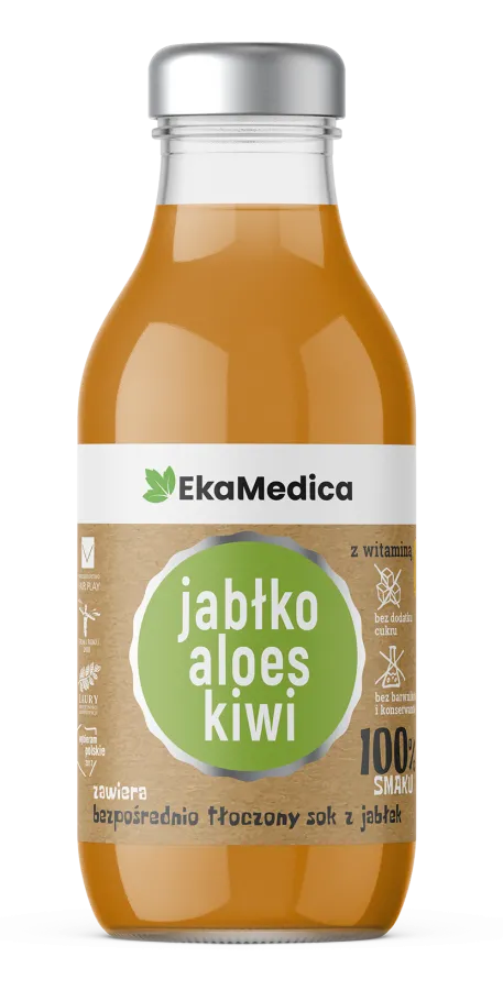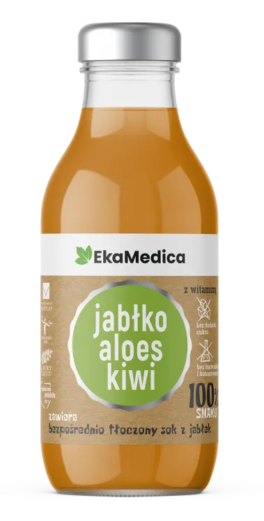 Suplement diety wyprodukowany z soku jabłkowego bezpośrednio tłoczonego z dodatkiem soku z aloesu i soku z owoców kiwi, wzbogacony witaminą C. Pasteryzowany.